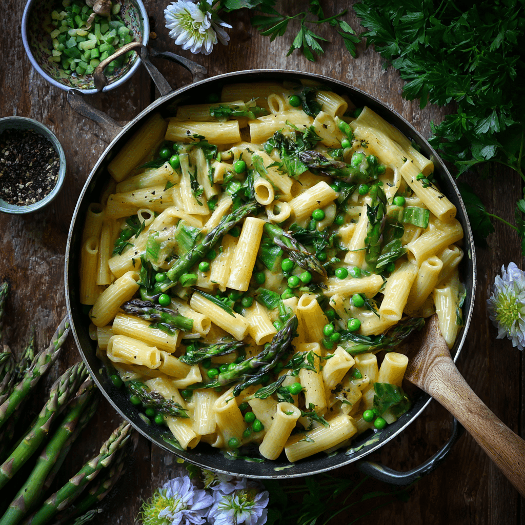 When I stand in my kitchen and make Pasta Primavera with Asparagus and Peas, I feel the same joy I felt as a little girl standing beside my grandmother, watching her hands move with calm confidence. She always said spring vegetables carry hope inside them. Every time I cook Pasta Primavera with Asparagus and Peas, I remember her opening the windows wide, letting the breeze and sunlight mix with the smell of olive oil.