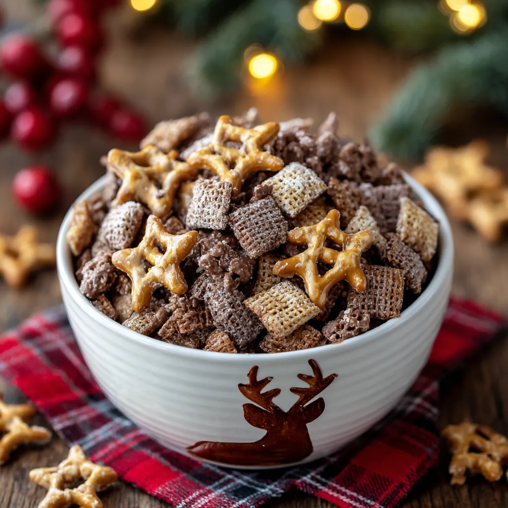 When I was a child, my grandmother and I would prepare simple chocolate sweets together. She taught me to mix ingredients with love, and I still hear her saying, “A recipe tastes better when you smile while making it.” That’s exactly why this Peanut Butter Chocolate Reindeer Chow holds a special place in my heart it’s playful, simple, a little messy, and always brings joy.