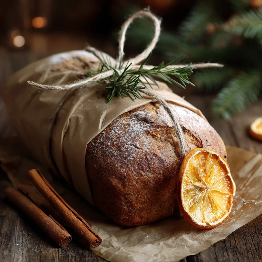 Once completely cool, wrap your loaf in parchment paper or brown craft paper. Tie it with a soft ribbon or twine. For a festive touch, tuck in a cinnamon stick, dried orange slice, or sprig of rosemary.
