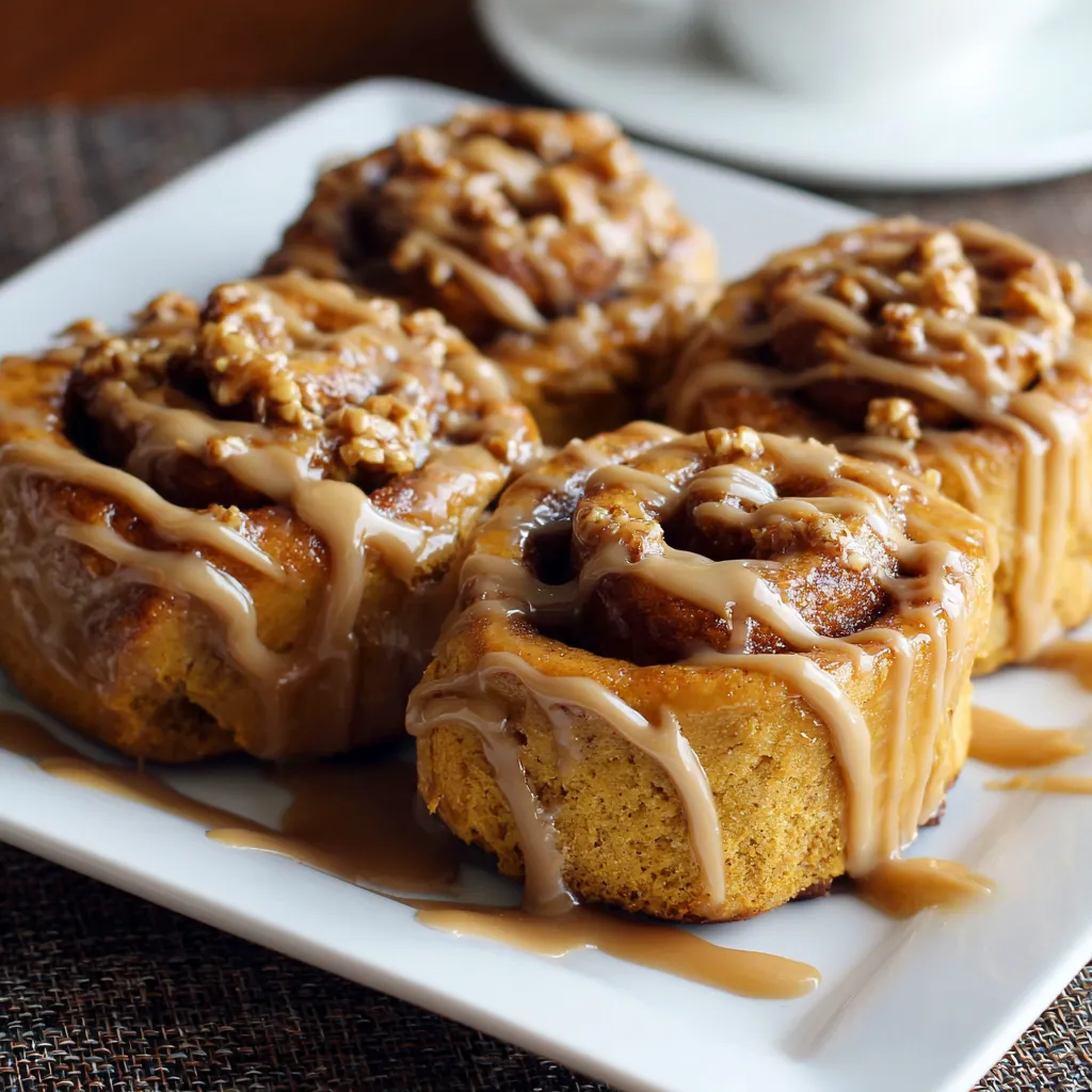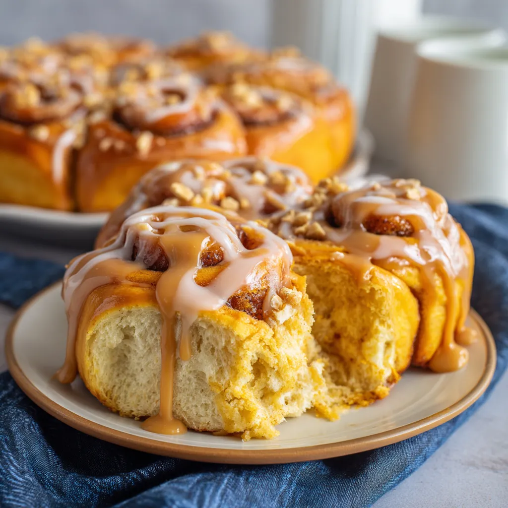 Pumpkin Cinnamon Rolls with Caramel Buttercream Frosting โ Soft, Sweet & Perfect for Fall