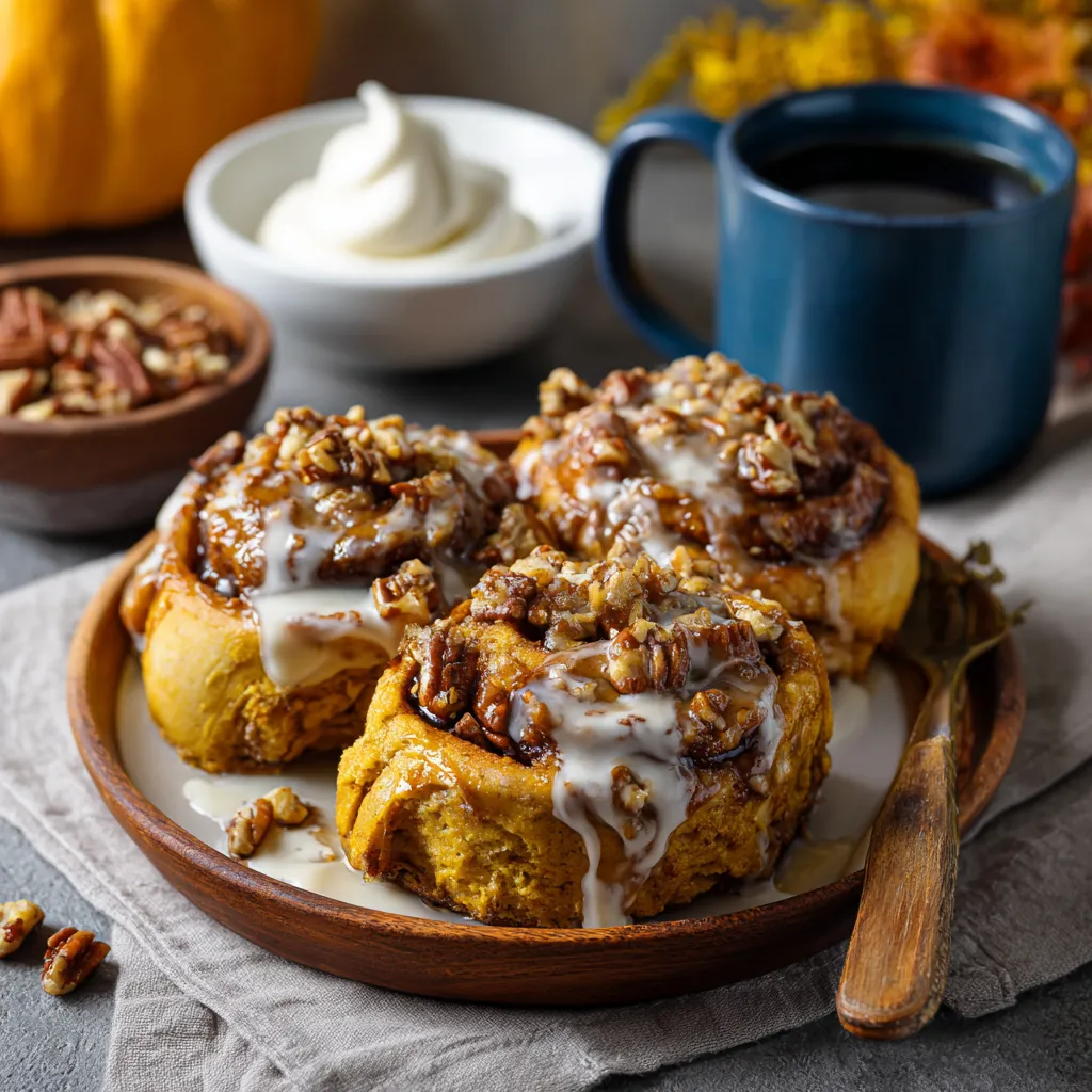 Pumpkin Cinnamon Rolls with Espresso Glaze – Soft, Spiced & Irresistible