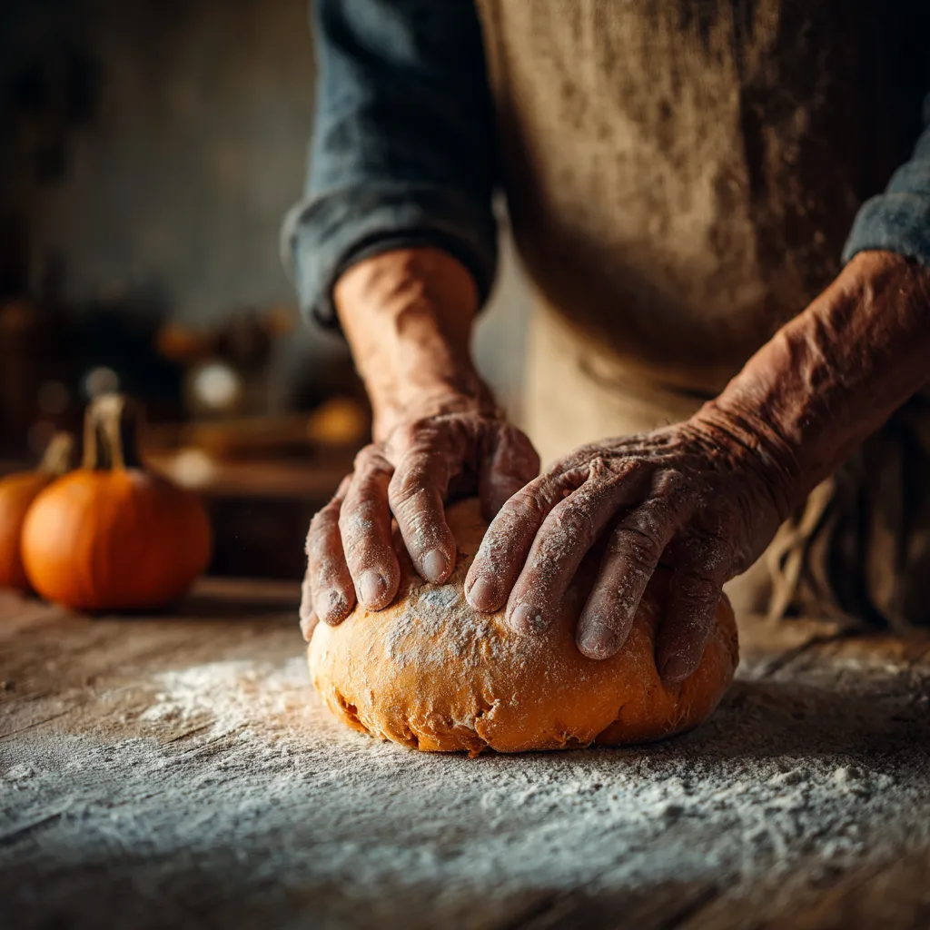 In a bowl, mix warm milk, pumpkin puree, melted butter, sugar, egg, and vanilla. In another bowl, combine flour, yeast, salt, cinnamon, and nutmeg. Add wet ingredients to dry and stir until a dough forms. Knead 6–8 minutes until smooth. Cover and let rise 1 hour or until doubled.Roll and Fill: