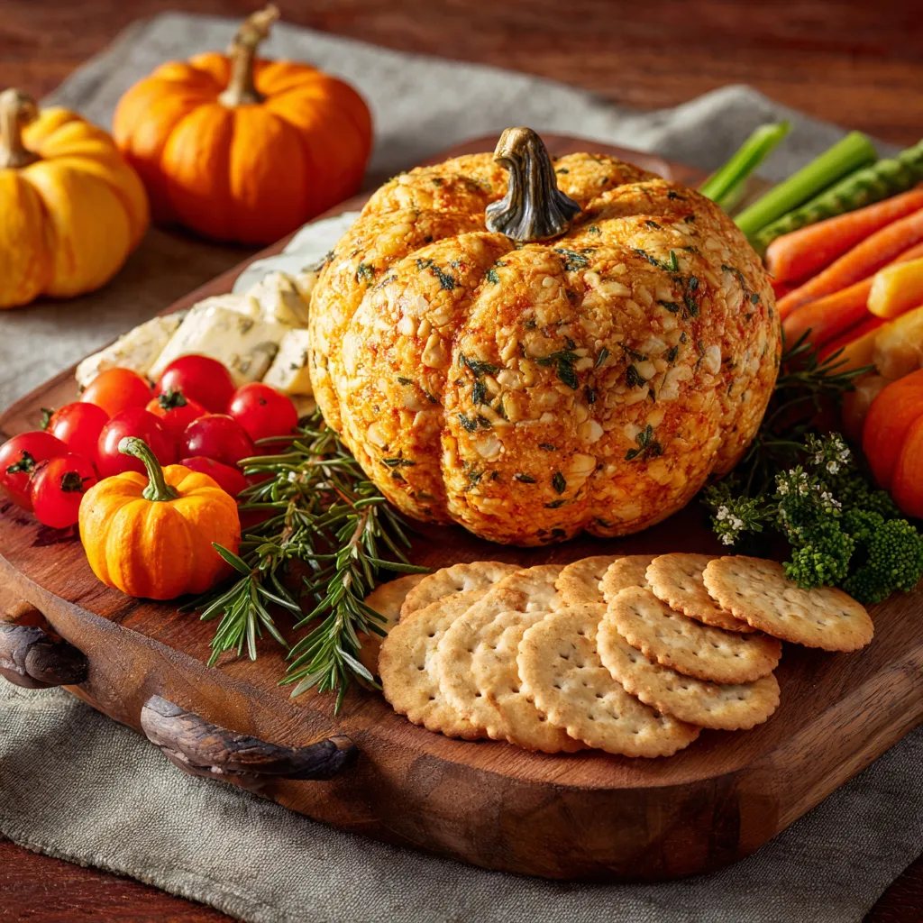 Serve your pumpkin-shaped cheese ball with spiced nuts alongside crackers, fresh veggie sticks, or slices of toasted baguette. It pairs beautifully with a glass of wine, apple cider, or even sparkling water with herbs. For a festive touch, place it on a wooden board with seasonal decorations like small pumpkins, rosemary sprigs, or dried cranberries. It’s as much a feast for the eyes as it is for the taste buds.