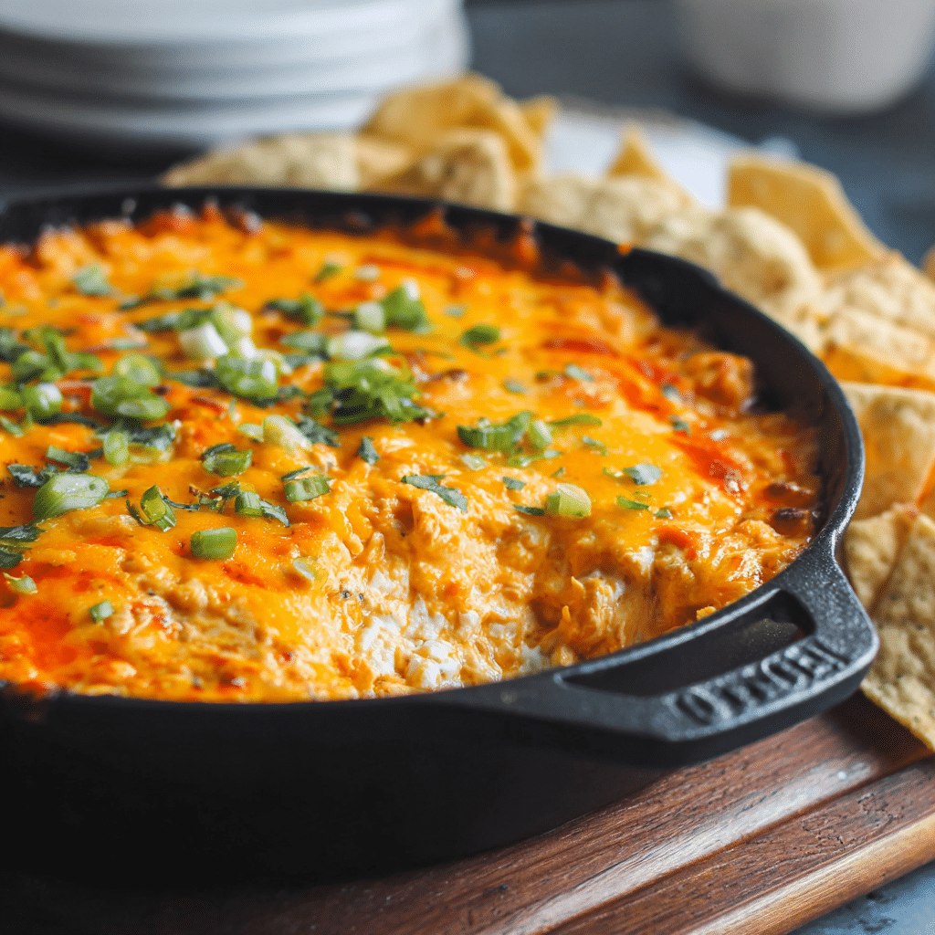 This Quick Buffalo Chicken Dip Recipe is creamy, spicy, and made for sharing. I mix shredded chicken, cream cheese, Greek yogurt, buffalo sauce, and cheese into a warm, comforting dip that comes together fast. I bake it until bubbly and finish with fresh green onions. This recipe works perfectly for busy days, unexpected guests, or cozy family nights. It feels indulgent but simple, bold but balanced. Every bite brings warmth, laughter, and connection — exactly what good food should do.