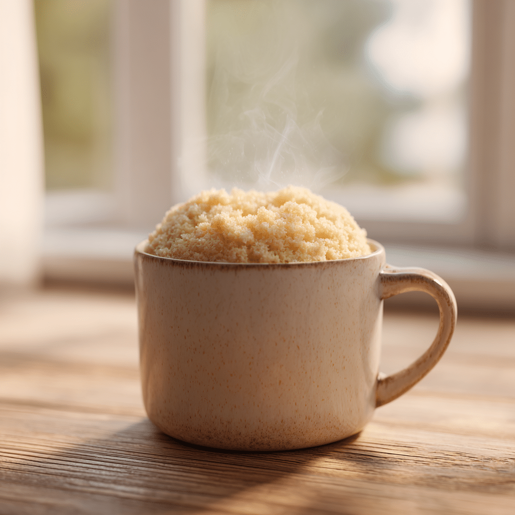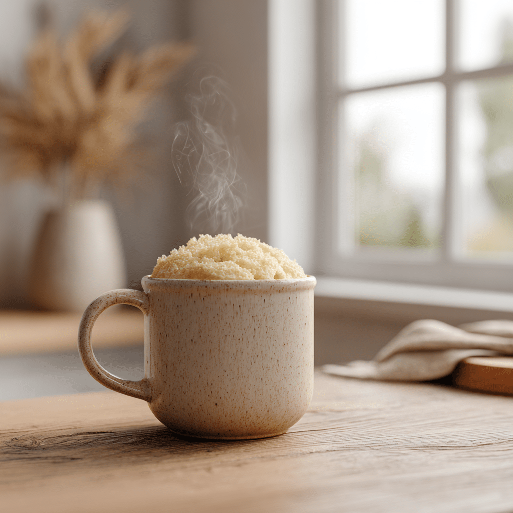 Use a mug that holds at least 12 ounces to prevent overflow. Do not overmix the batter. Microwave times may vary, so start with less time. Serve warm with yogurt, honey, or powdered sugar.