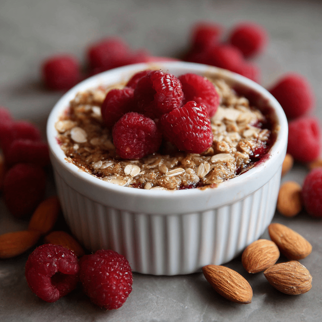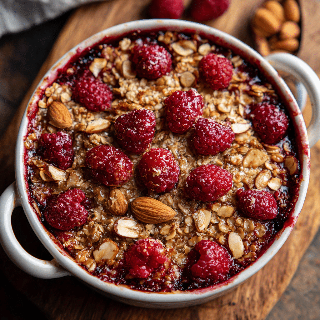 I use old-fashioned rolled oats, never instant. They give the bake structure and a comforting bite. I choose raspberries because their gentle tartness balances the sweetness beautifully. Almonds add crunch and warmth, especially when lightly toasted.