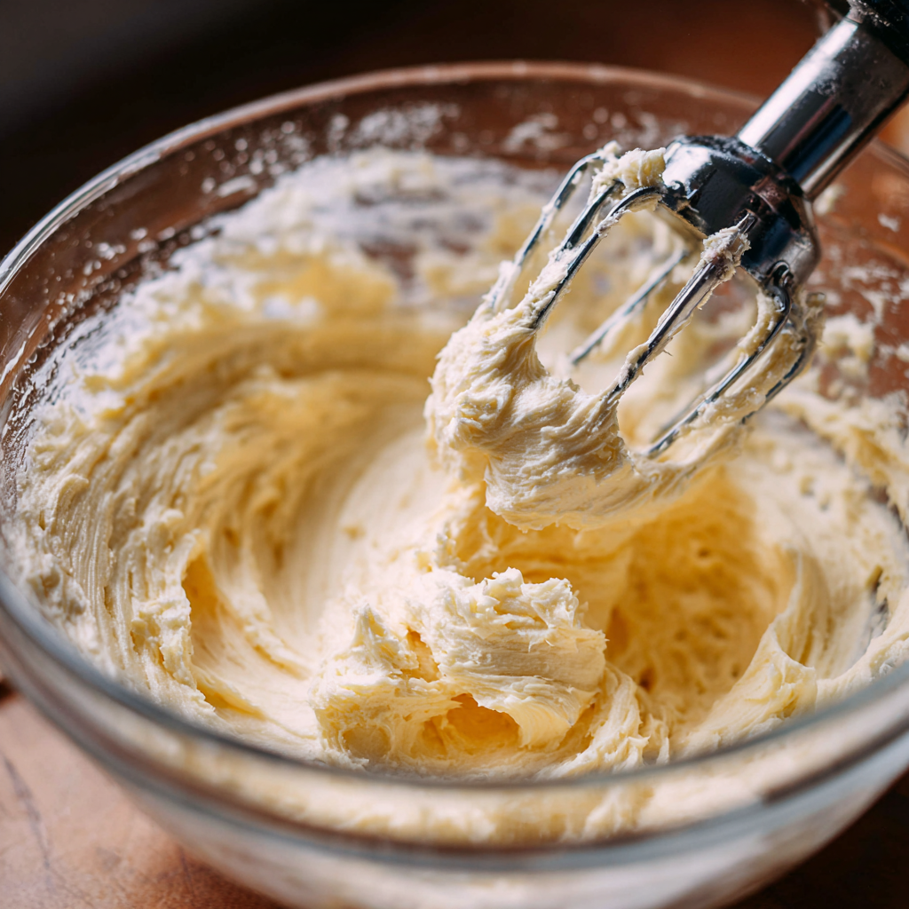 Cream butter & sugars: Beat butter, brown sugar, and granulated sugar until fluffy (2 minutes). Add eggs one at a time, then vanilla.