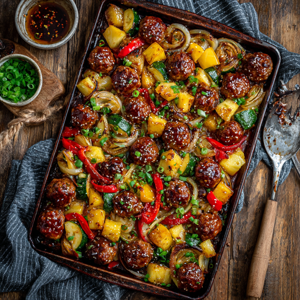 Hi, I’m INAYA, 38, from the beautiful island of Crete in Greece. Cooking has been part of my life since childhood, learning from my grandmother how to make dishes full of love and flavor. Today, I mix those lessons with simple, modern ideas for busy homes. This Sheet Pan Hawaiian Meatballs and Veggies recipe is one of those happy accidents minimal cleanup, bold flavors, and a meal that brings everyone to the table smiling.