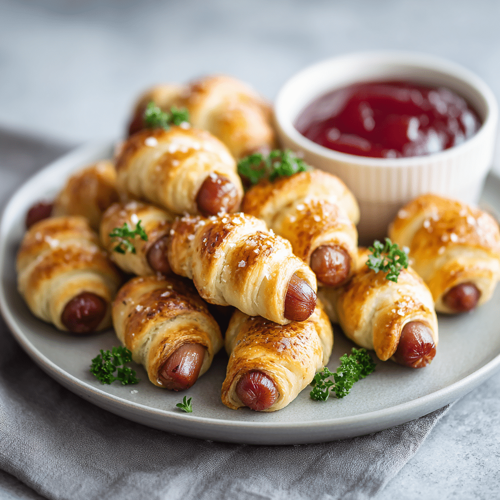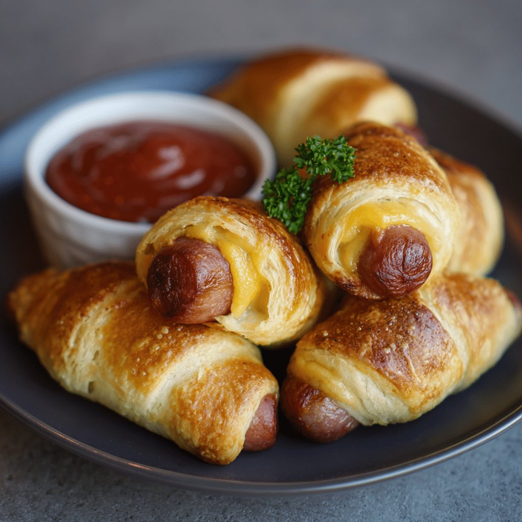 This recipe has become a little tradition in my home. Movie nights, birthday tables, school gatherings, or just a quiet evening in the kitchen Simple 3-Ingredient Pigs in a Blanket always fits. It’s warm, flaky, salty, and made with love, even when time is short.