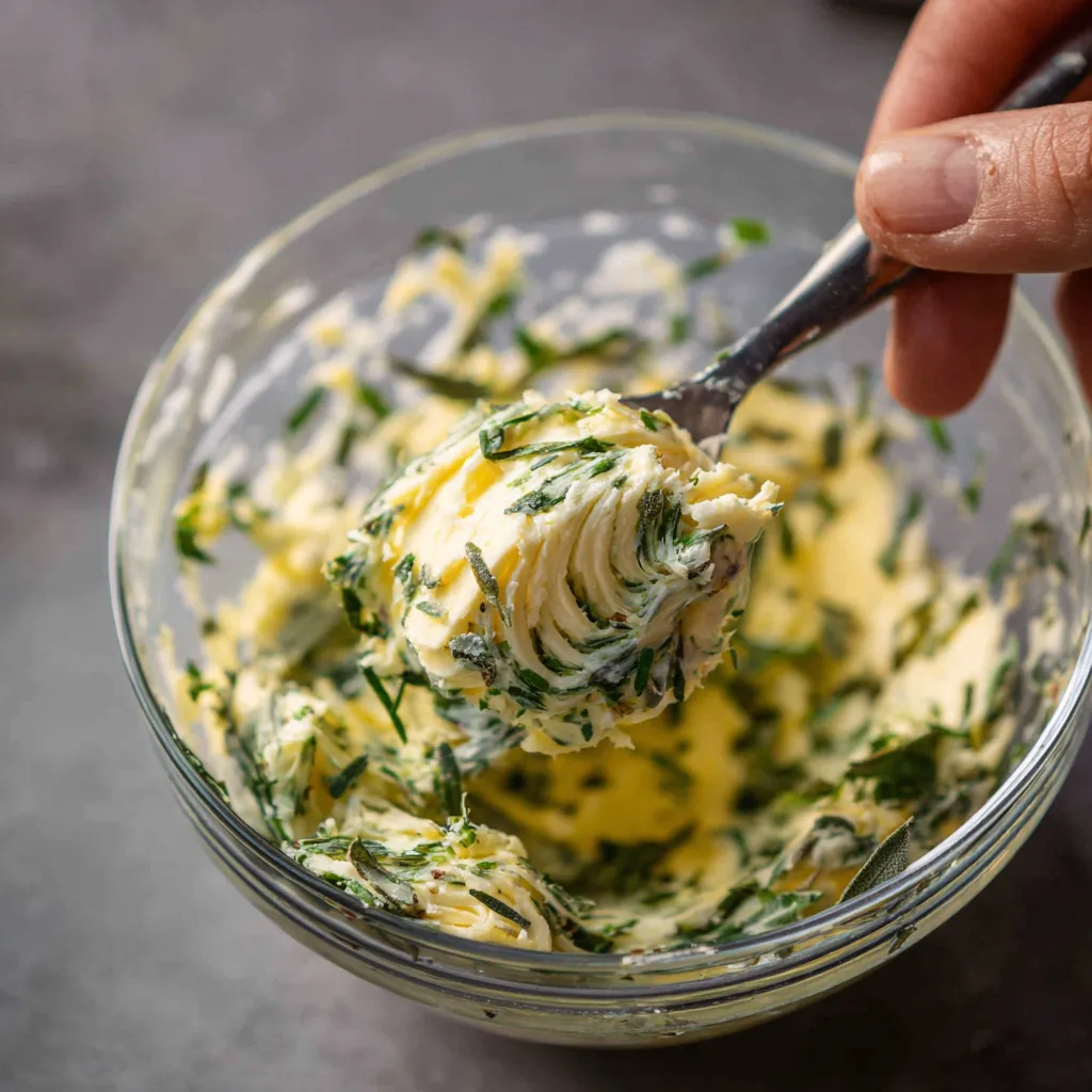In a small bowl, mix the softened butter with sage, garlic, thyme, parsley, lemon zest, salt, and pepper. Stir until well combined the aroma will be heavenly!
