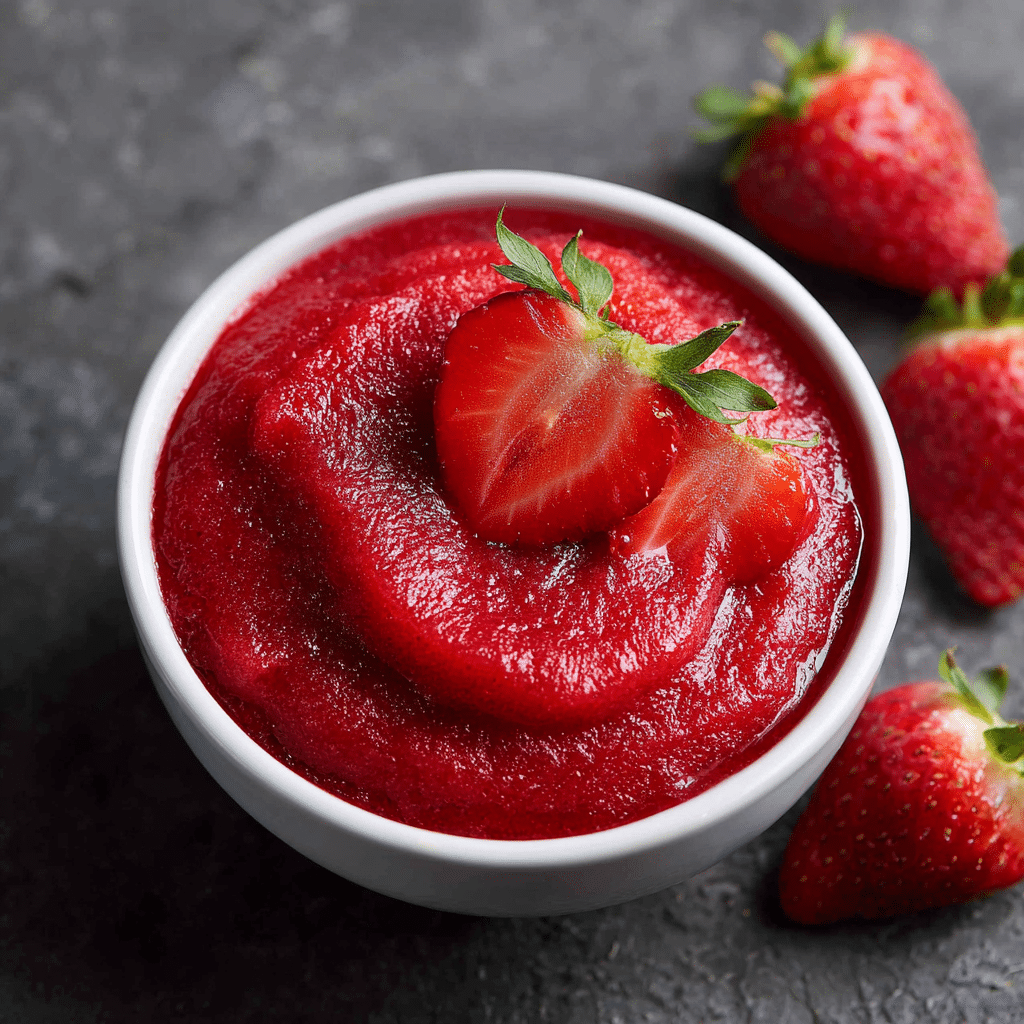 I make smooth strawberry purée without sugar using fresh ripe strawberries, a splash of lemon juice, and sometimes a little water. I wash and hull the strawberries, blend them until silky smooth, and strain them if I want extra smooth texture. I never add sugar because ripe strawberries taste naturally sweet. I use this purée over yogurt, pancakes, oatmeal, ice cream, or toast. I store it in the refrigerator for up to four days or freeze it for later. This recipe feels fresh, light, healthy, and beautifully simple.