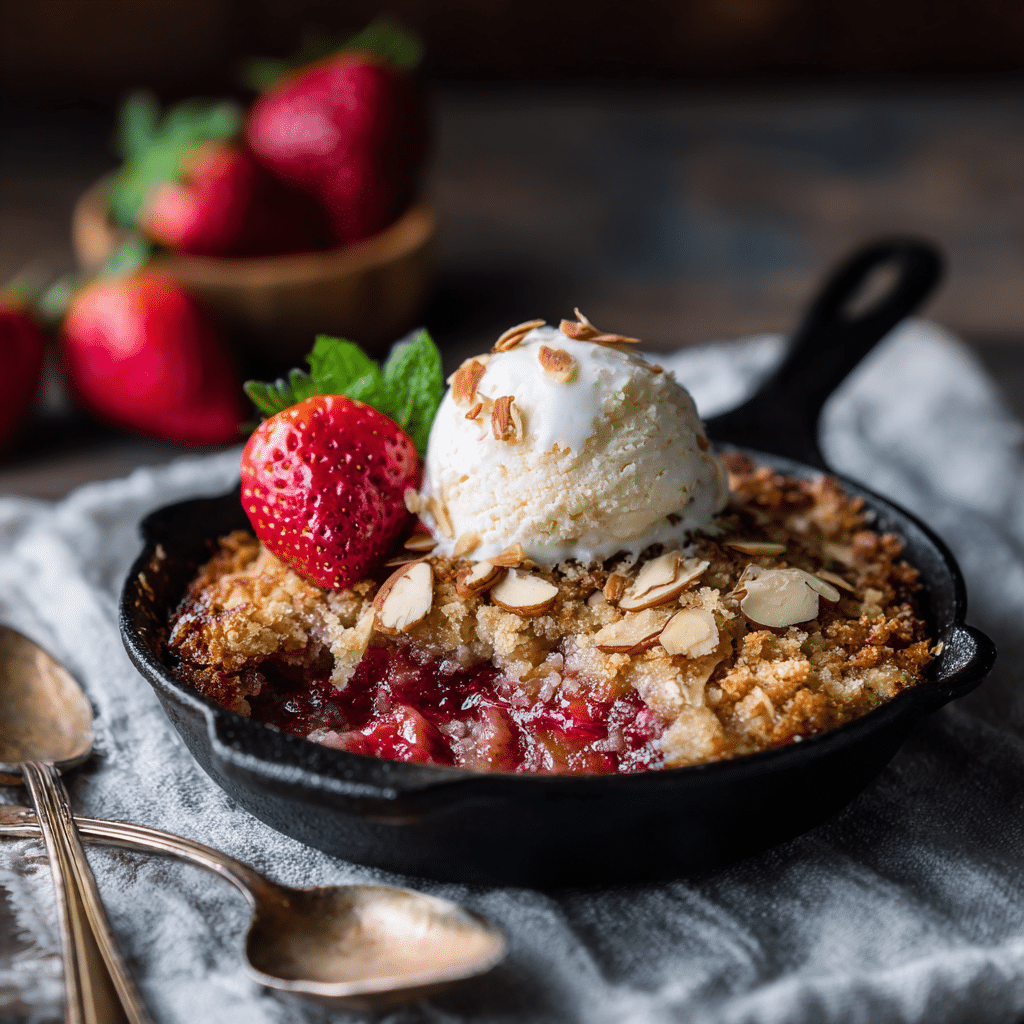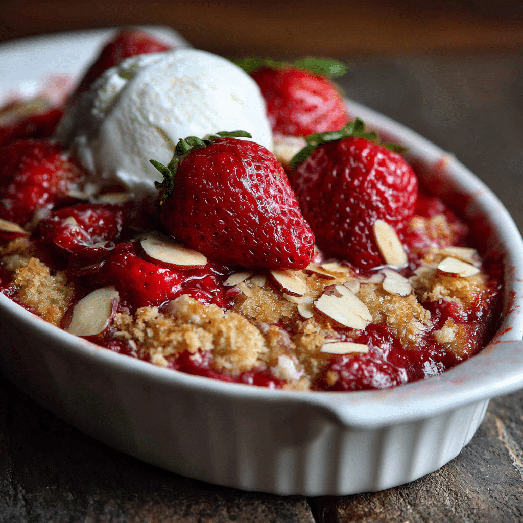 I love serving Strawberry Almond Dump Cake warm. I scoop it gently into small bowls. I add a scoop of vanilla ice cream on top and watch it melt into the warm cake. Sometimes I drizzle a little honey over the almonds for extra shine.