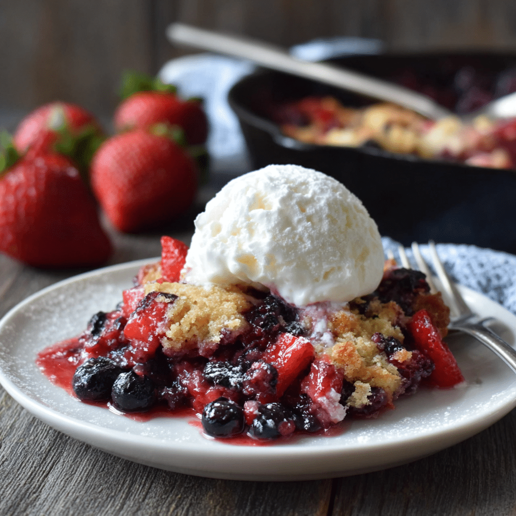 I love it because the strawberries become soft and jammy, and the blueberries burst into little pockets of sweetness. I love how the buttery topping turns golden and slightly crisp on top while staying soft underneath. Every spoonful gives me sweet berries and tender cake in the same bite.