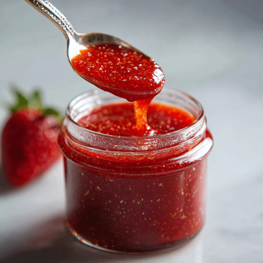 Adjust sugar depending on strawberry sweetness. Simmer longer for a thicker sauce. Use frozen strawberries if needed—thaw first. Store in the refrigerator for up to 5 days or freeze for 3 months.