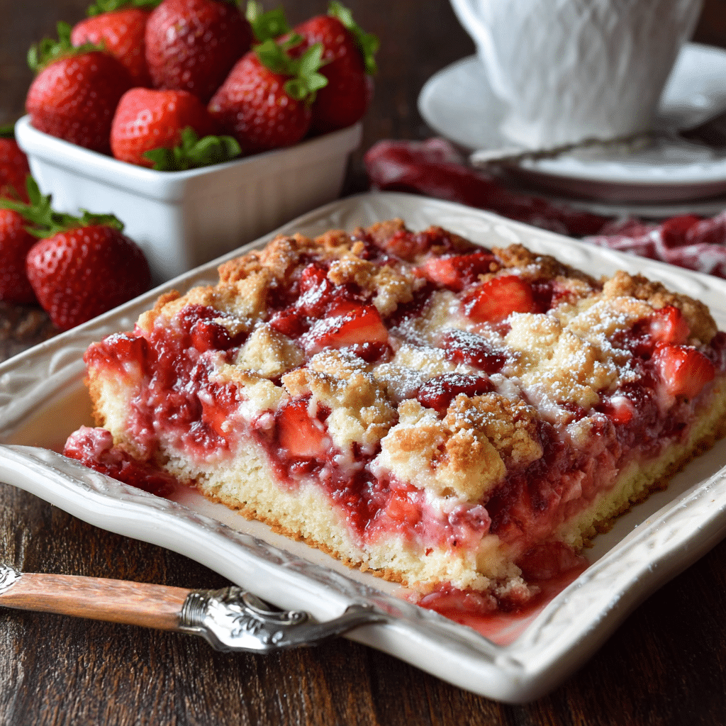 Softening the cream cheese makes it blend smoothly and melt into creamy pockets. Drizzle the butter slowly and evenly to avoid dry powdery spots on top—if you notice any dry areas halfway through baking, lightly drizzle a bit more melted butter. You can swap strawberry filling for cherry or blueberry for an easy variation. Store leftovers covered in the fridge for up to 4 days. Reheat in the microwave for 30–40 seconds or warm in a 320°F (160°C) oven for about 10 minutes.