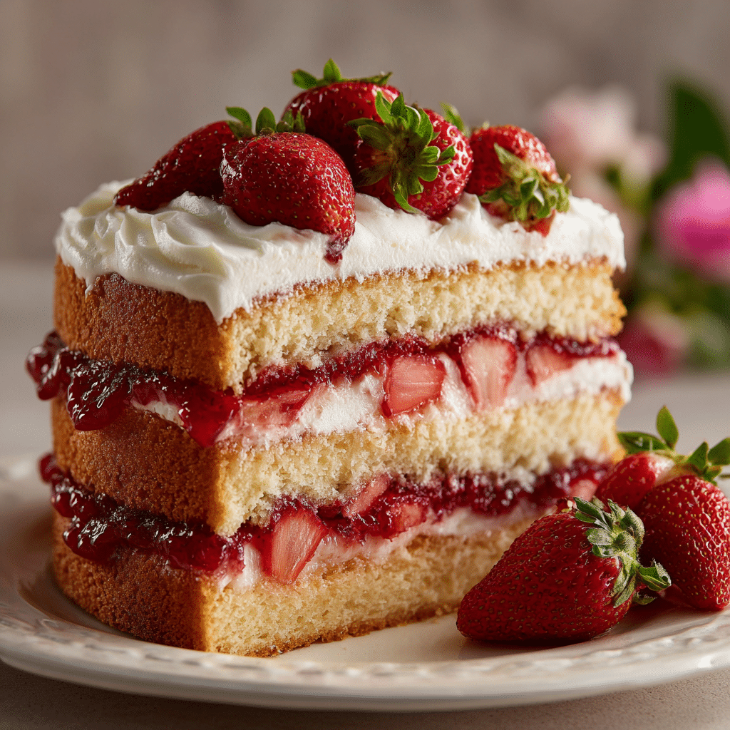For birthday cakes, I bake three layers of vanilla sponge. I pipe a ring of buttercream around the edge of each layer, then spoon the strawberry filling in the center. This keeps it from leaking out. The result looks beautiful when sliced.