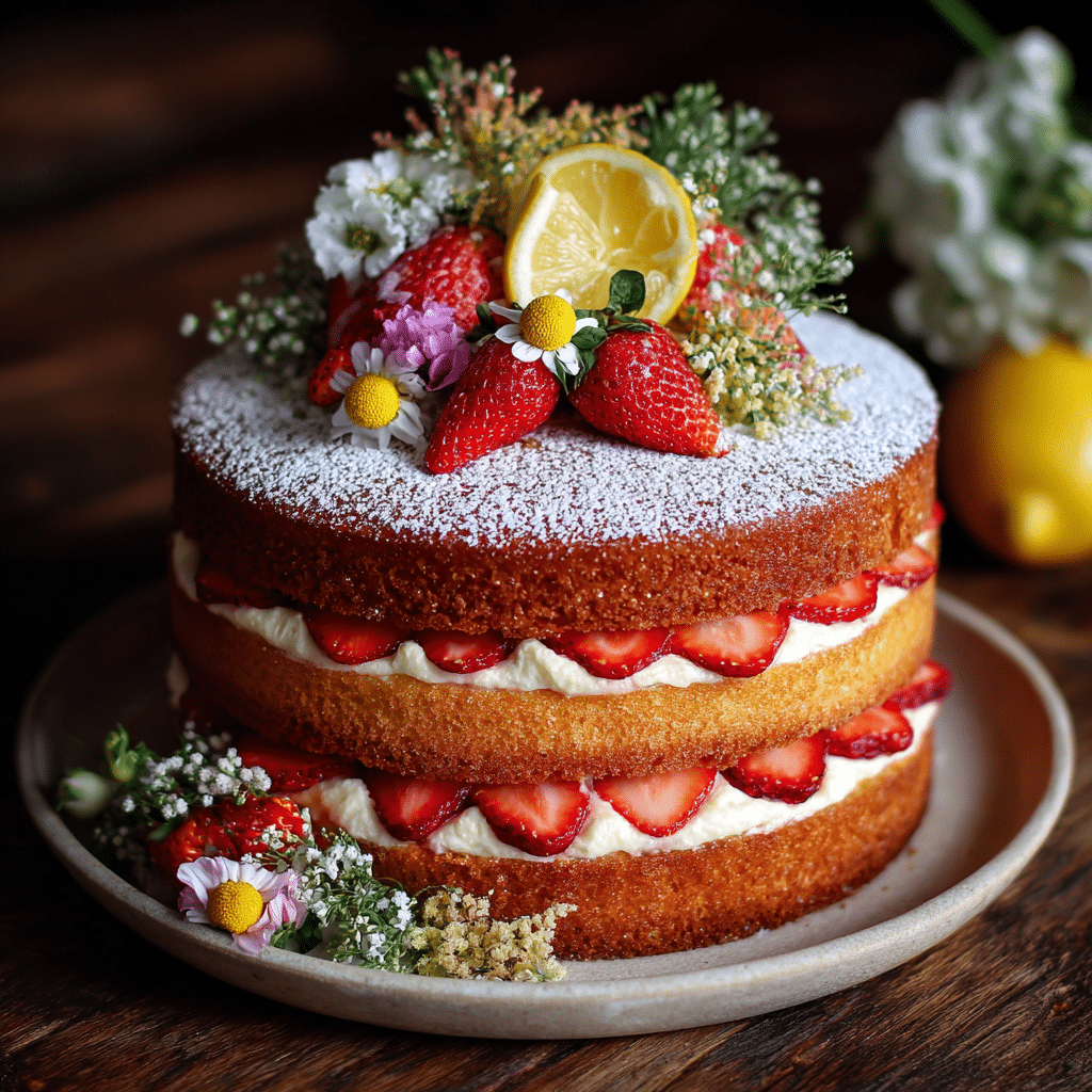 On our island, strawberries arrive in spring, sweet and fragrant. I pair them with lemon because lemon reminds me of the trees that grow near my grandmother’s kitchen window. The balance of sweet strawberries and fresh lemon makes this Strawberry Lemon Naked Cake light, bright, and perfect for gatherings.