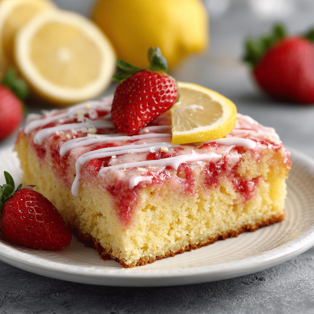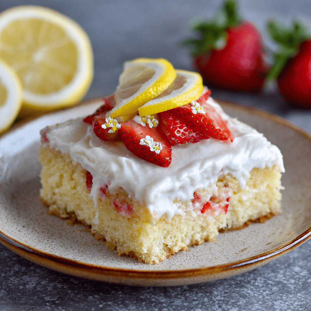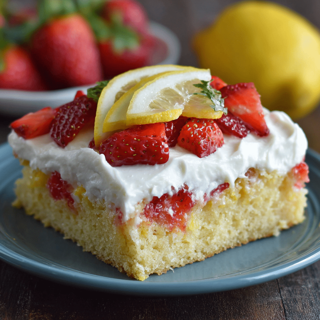 The lemon keeps the sweetness balanced. The strawberries add freshness and color. The texture stays soft and moist, even the next day. And the frosting melts gently into the cake, making every bite creamy and bright.