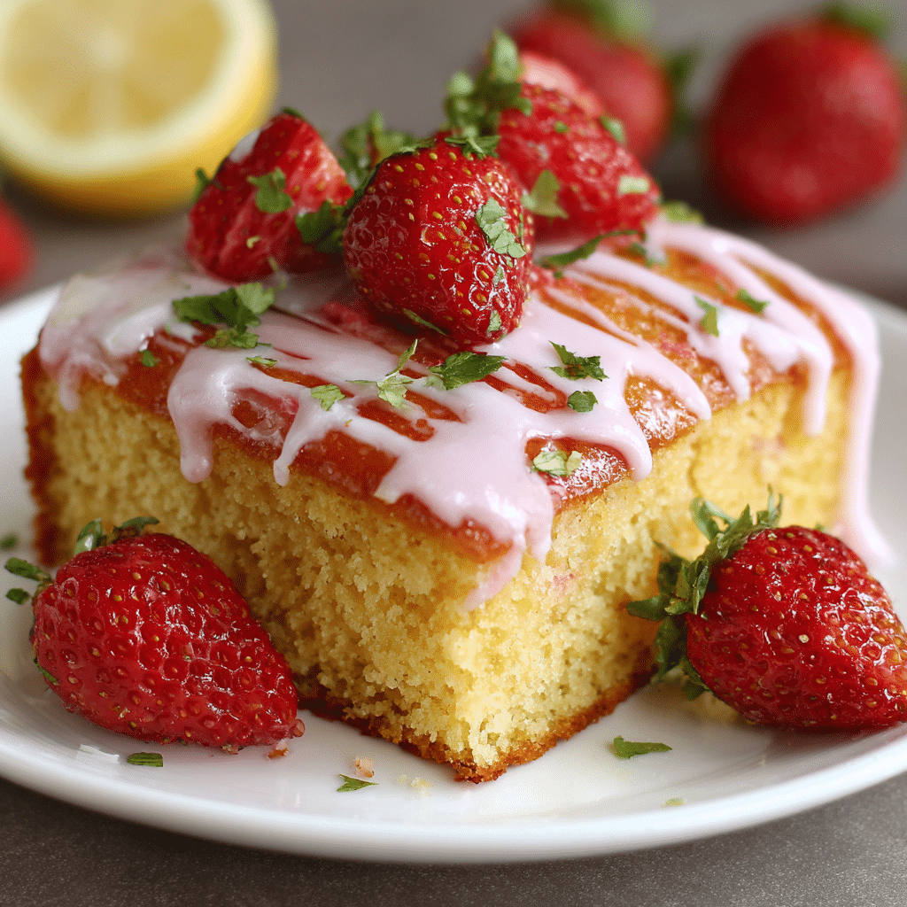 This strawberry lemon snack cake is soft, bright, and perfect for everyday baking. I mix fresh strawberries with lemon zest and juice to create a tender cake that feels simple and comforting. I bake it in one pan, cut it into squares, and serve it plain or with a dusting of sugar. It stays moist for days and fits beautifully into real life, from busy mornings to quiet afternoons. This cake proves that you don’t need frosting or layers to make something truly special.