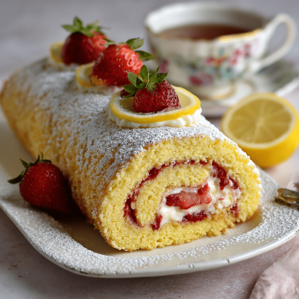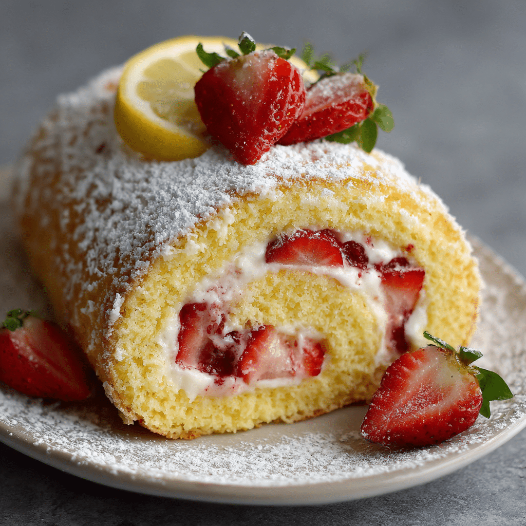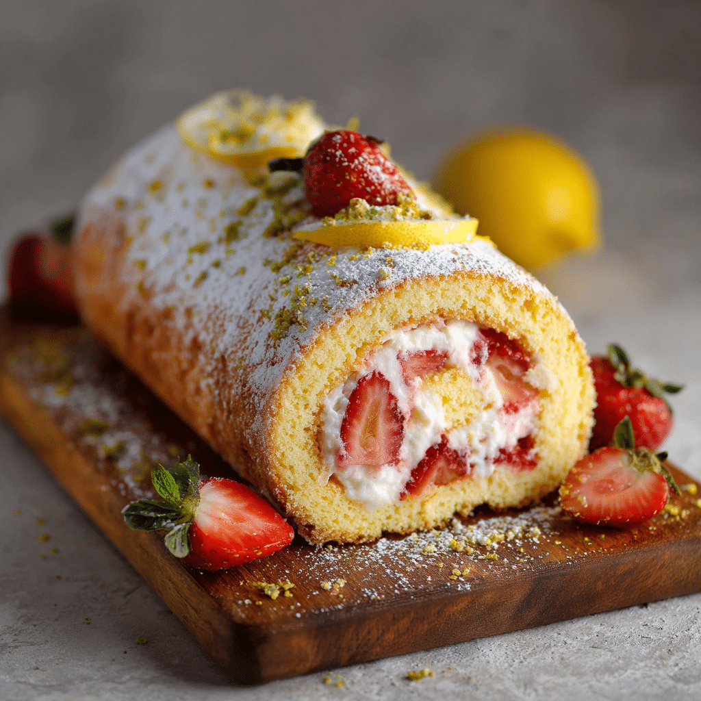 This Strawberry Lemon Sponge Roll Cake is light, fluffy, and bursting with fresh strawberry and lemon flavor. A soft sponge cake rolled with sweet whipped cream and juicy strawberries creates a beautiful spiral dessert that feels elegant yet simple. Perfect for spring gatherings, birthdays, or afternoon coffee, this homemade Swiss roll stays moist, airy, and full of bright citrus freshness.