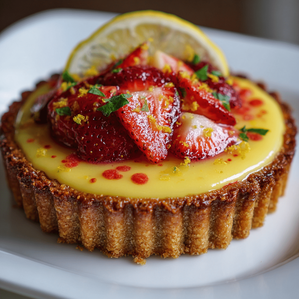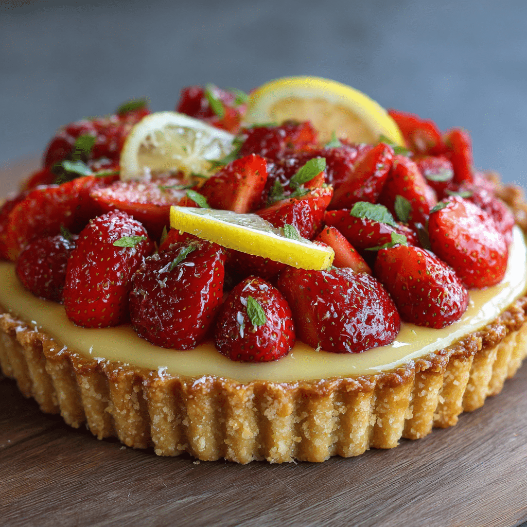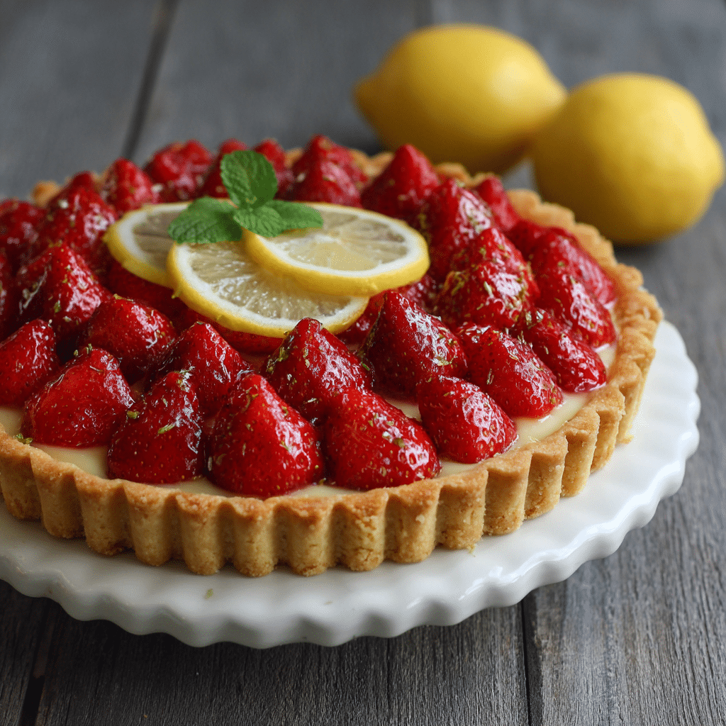 Always use fresh lemon juice for the best flavor. Chill the tart completely before slicing for clean cuts. Add strawberries the same day you serve for maximum freshness. Store covered in the refrigerator for up to 3 days.