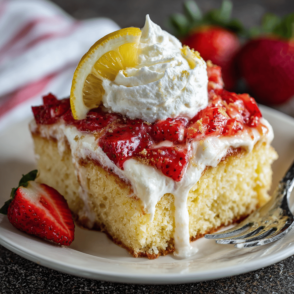 Strawberry Lemon Tres Leches Cake always makes me smile before I even take the first bite. The fresh strawberries, the soft sponge, the creamy milk soaking into every layer, and that gentle kiss of lemon — it feels like sunshine on a plate.
