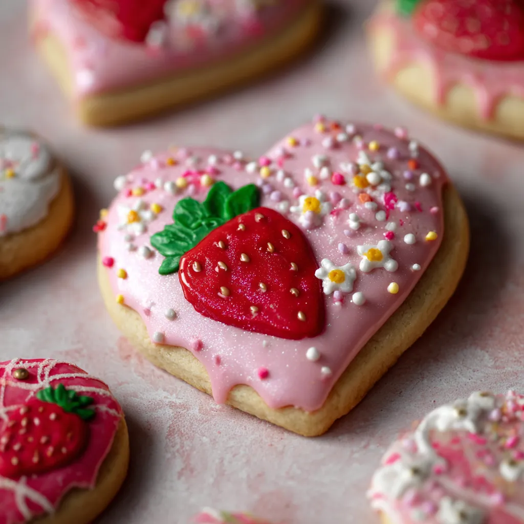 Once the cookies are completely cool, drizzle the glaze over each one or dip the tops. For a little extra magic, add thin strawberry slices or a drizzle of white chocolate.