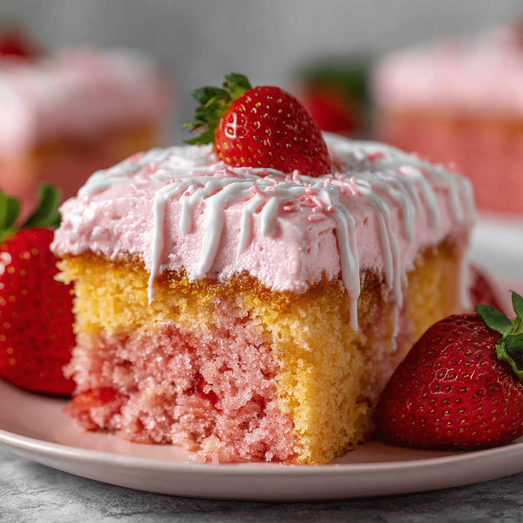 This Strawberry Poke Sheet Cake from Scratch is the kind of dessert I make when I want a table full of smiles. I bake a soft vanilla sheet cake, poke it while it’s still warm, then pour over a bright homemade strawberry syrup so every bite turns juicy and tender. I finish it with fluffy whipped cream and fresh strawberries on top. It’s simple, make-ahead friendly, and perfect for birthdays, potlucks, and sunny weekends—no box mix needed.