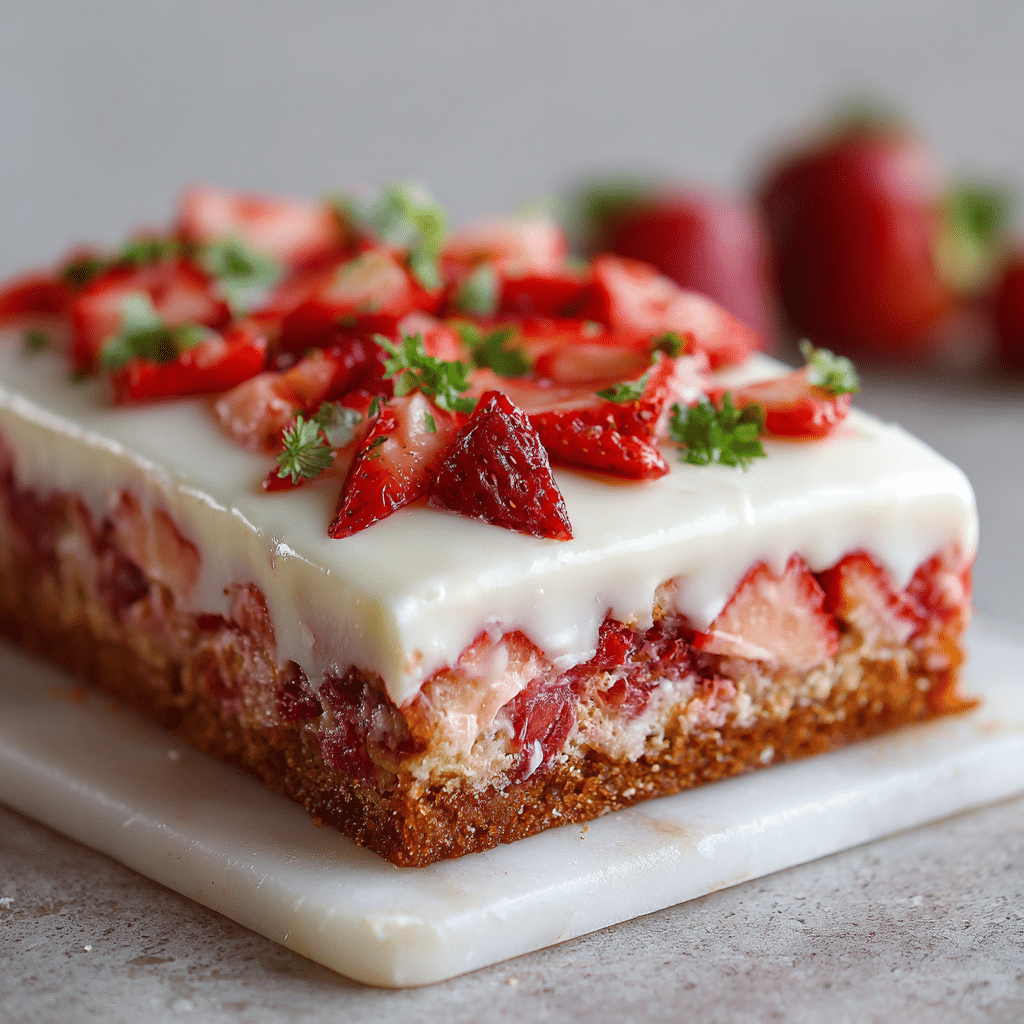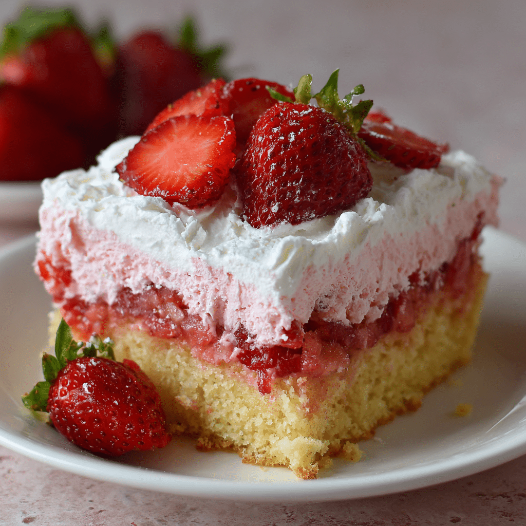 Use fresh ripe strawberries for the best flavor. You can substitute frozen strawberries if thawed and drained well. Store leftovers in the refrigerator for up to 3 days. For extra freshness, top with sliced strawberries before serving. This cake can be made a day ahead and chilled overnight for even better texture.