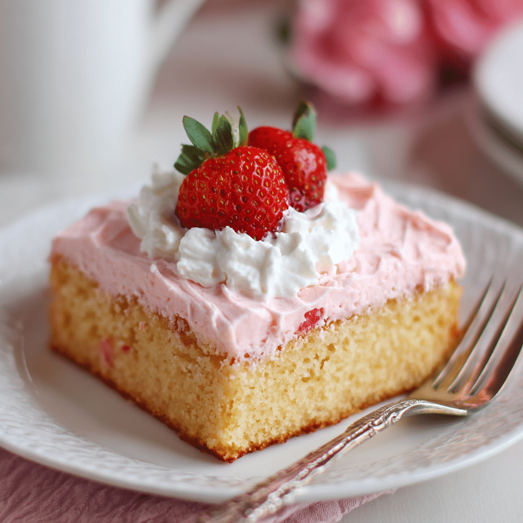 This Strawberry Sheet Cake with Whipped Frosting is soft, moist, and full of fresh strawberry flavor. I bake it in a simple sheet pan, making it perfect for gatherings and family dinners. The cake uses real strawberry puree for natural sweetness and color. I top it with light, fluffy whipped cream frosting and fresh strawberry slices. It feels fresh, comforting, and easy to make. I store it in the fridge and serve it slightly chilled. This cake brings joy to my table every time and makes any day feel a little more special.