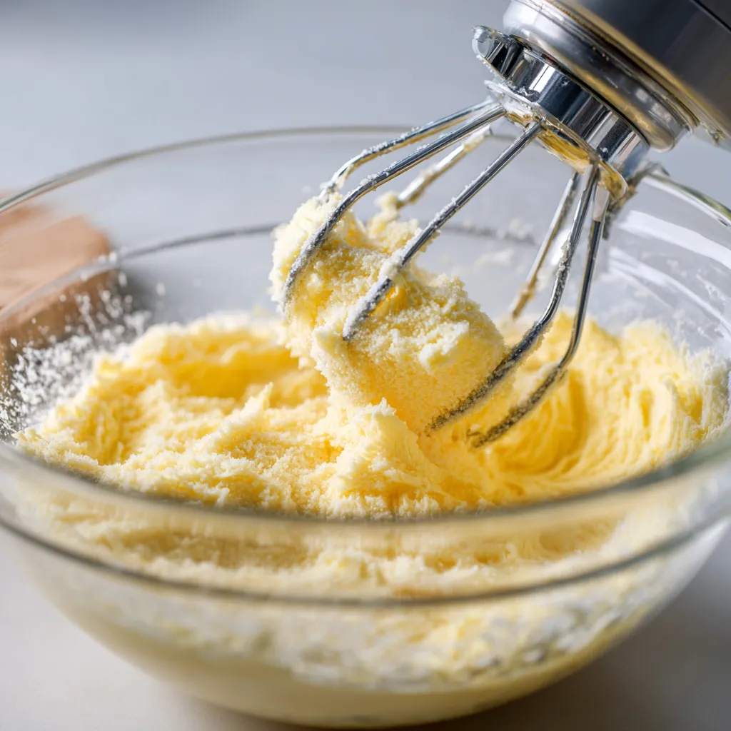 In a large mixing bowl, beat the softened butter and sugar together until light and fluffy. This should take about 2–3 minutes. The mixture should look pale and creamy that’s when you know it’s perfect.