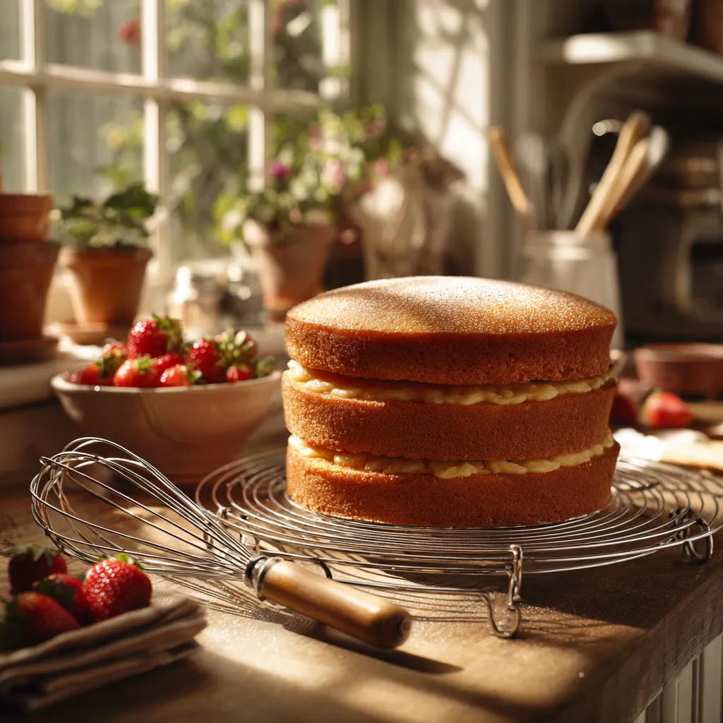 Preheat oven to 350°F (175°C). Grease and line three 8-inch cake pans. Mix flour, baking powder, and salt. In another bowl, beat butter and sugar until creamy. Add eggs one by one, then vanilla. Alternate adding flour and milk until combined. Bake 25–30 minutes. Cool completely.Prepare the Strawberry Filling: