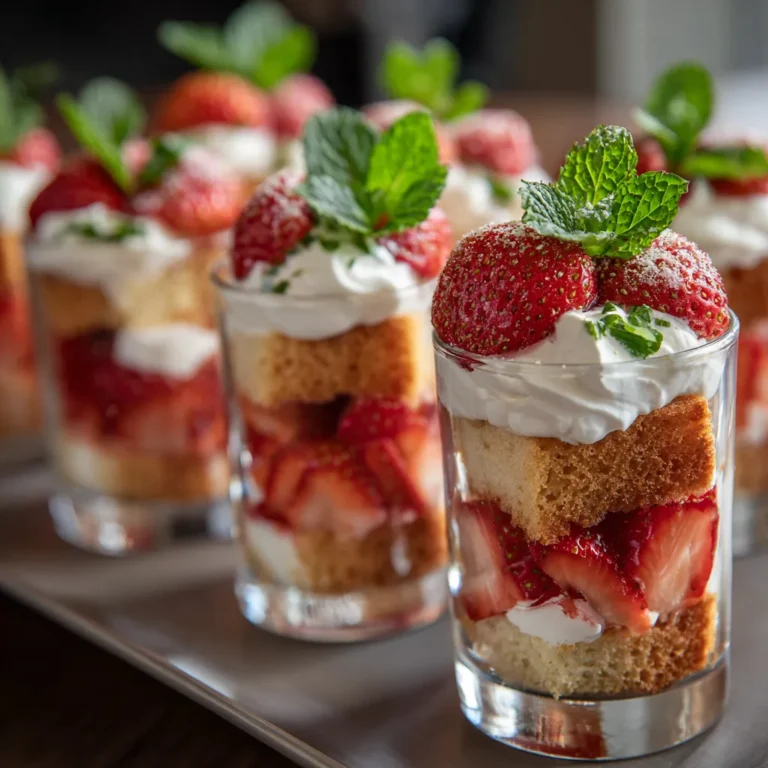 These Strawberry Shortcake Parfait Shooters are mini layered desserts made with soft vanilla cake, fresh strawberries, and whipped cream. Light, elegant, and easy to prepare, they’re perfect for parties, brunches, or a refreshing treat after dinner. Each bite tastes like summer in a glass — creamy, fruity, and absolutely irresistible!