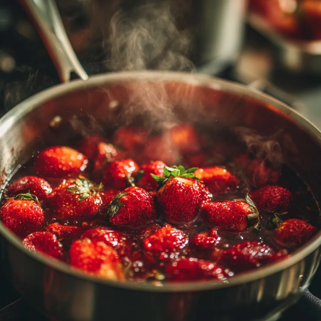 In a saucepan, combine chopped strawberries, sugar, and lemon juice. Cook over medium heat for about 5 minutes, stirring until the strawberries release their juices and slightly soften. Remove from heat and let cool.