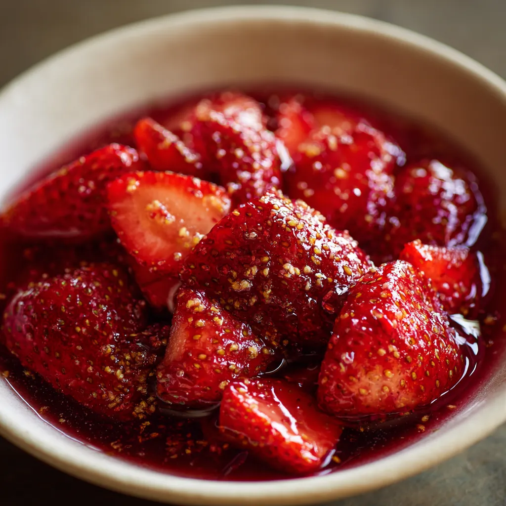 While your biscuits cool, toss the sliced strawberries with sugar and lemon juice. Let them sit for 15–20 minutes until they become juicy and syrupy.