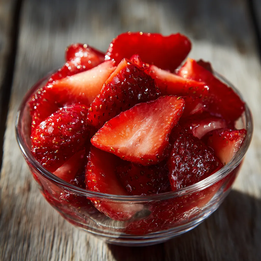 In a bowl, combine the sliced strawberries, sugar, and lemon juice. Toss gently and let them sit for 15–20 minutes. This allows the strawberries to release their natural juices, creating a sweet syrup.