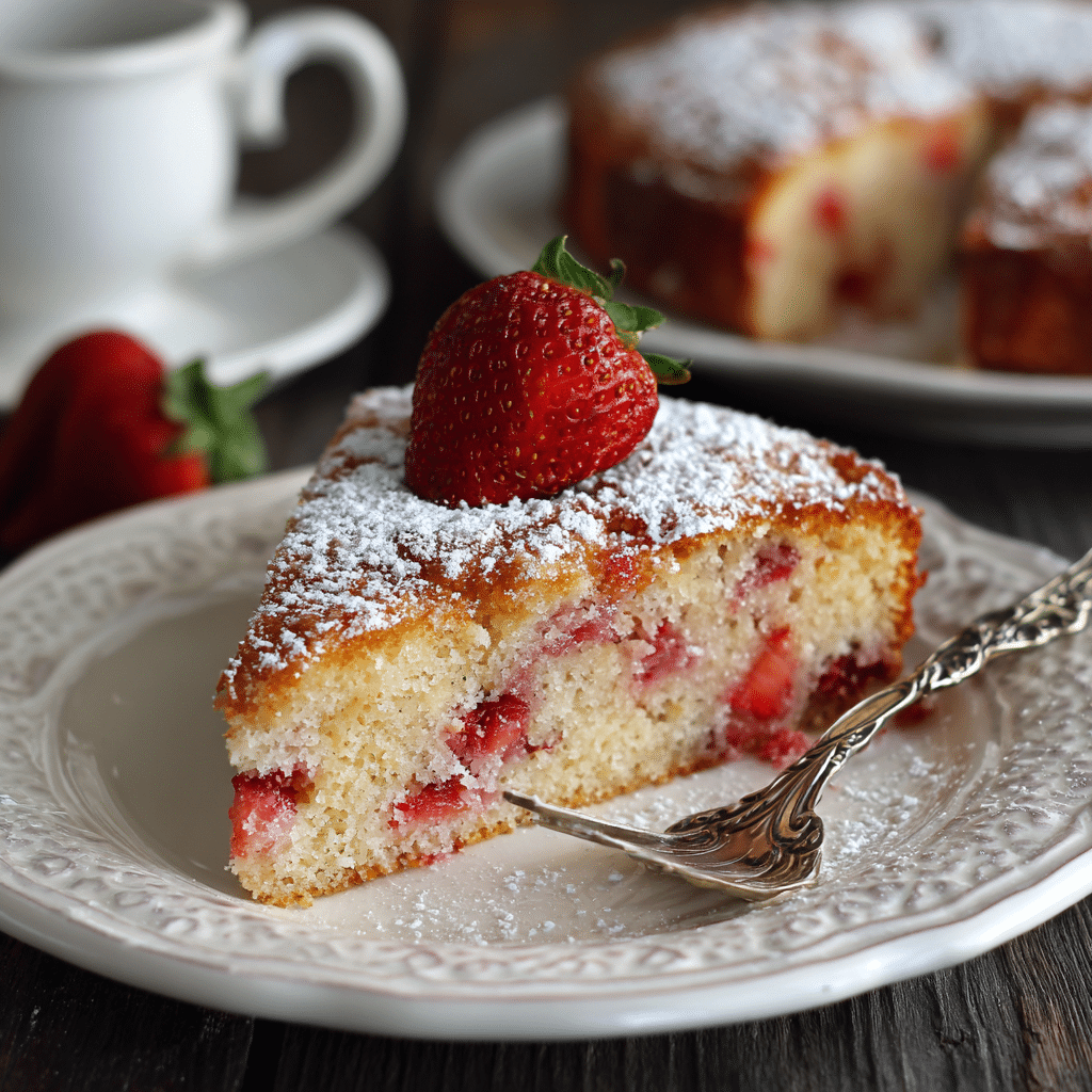 This Strawberry Yogurt Breakfast Cake feels like one of those recipes my grandmother would have made without ever writing it down. I still remember her early mornings, the sun just starting to warm the stone walls of our house, the smell of yogurt and fruit mixing in the air. She never rushed breakfast. She believed the first meal of the day set the tone for everything else.