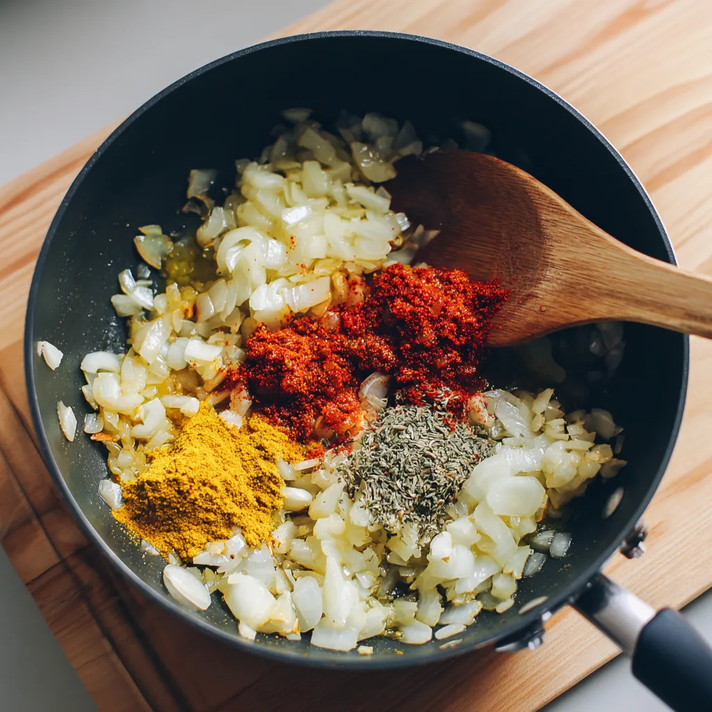 Start by heating the olive oil in a large pot over medium heat. Add the onion and sauté until it softens and becomes translucent. Stir in the garlic and ginger, letting their aroma bloom for about 30 seconds. Add the red curry paste and cook for 1 minute to release its full flavor.