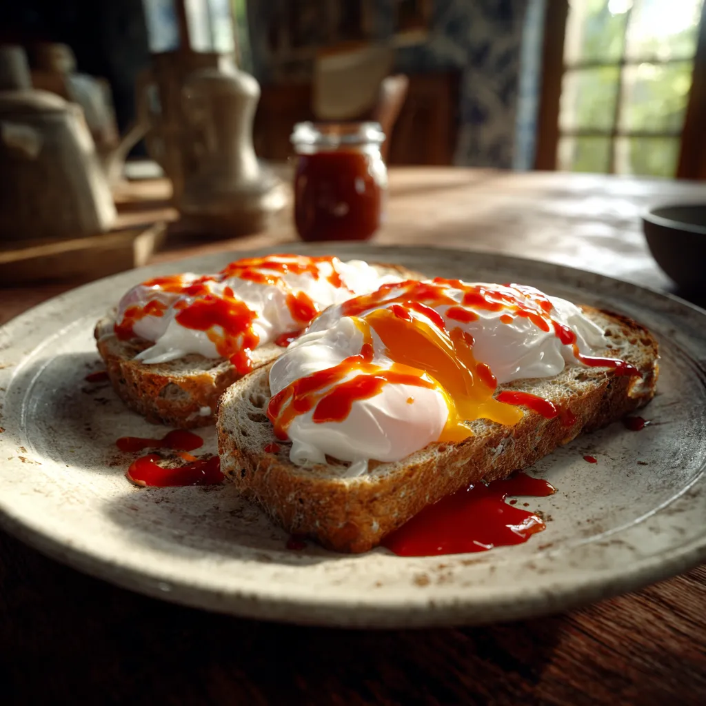 Spread butter on each toasted bread slice. Layer with avocado slices and sautéed greens if using. Gently place the poached eggs on top. Now, the fun part—drizzle your hot sauce across the eggs so it looks like a dramatic vampire bite. The yolk will ooze out when cut, mixing with the fiery drizzle for a visually stunning (and delicious) effect.