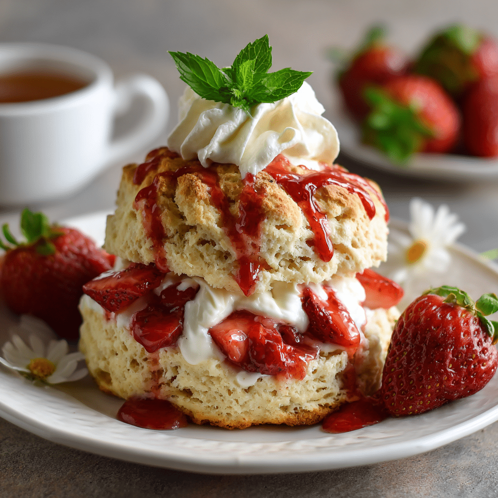 - Slice biscuits and layer with strawberries and whipped cream. Serve immediately.