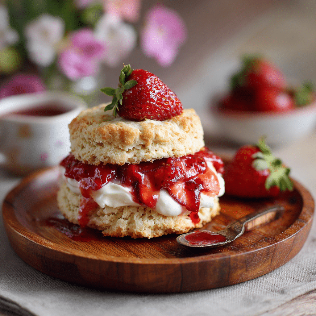 I adore the tender biscuit texture. I mix almond flour and gluten-free flour to create a soft, slightly crumbly biscuit that melts gently in the mouth. I whip coconut cream until it turns fluffy and cloud-like. I macerate strawberries with a little maple syrup and lemon juice until they glisten and release their juices.