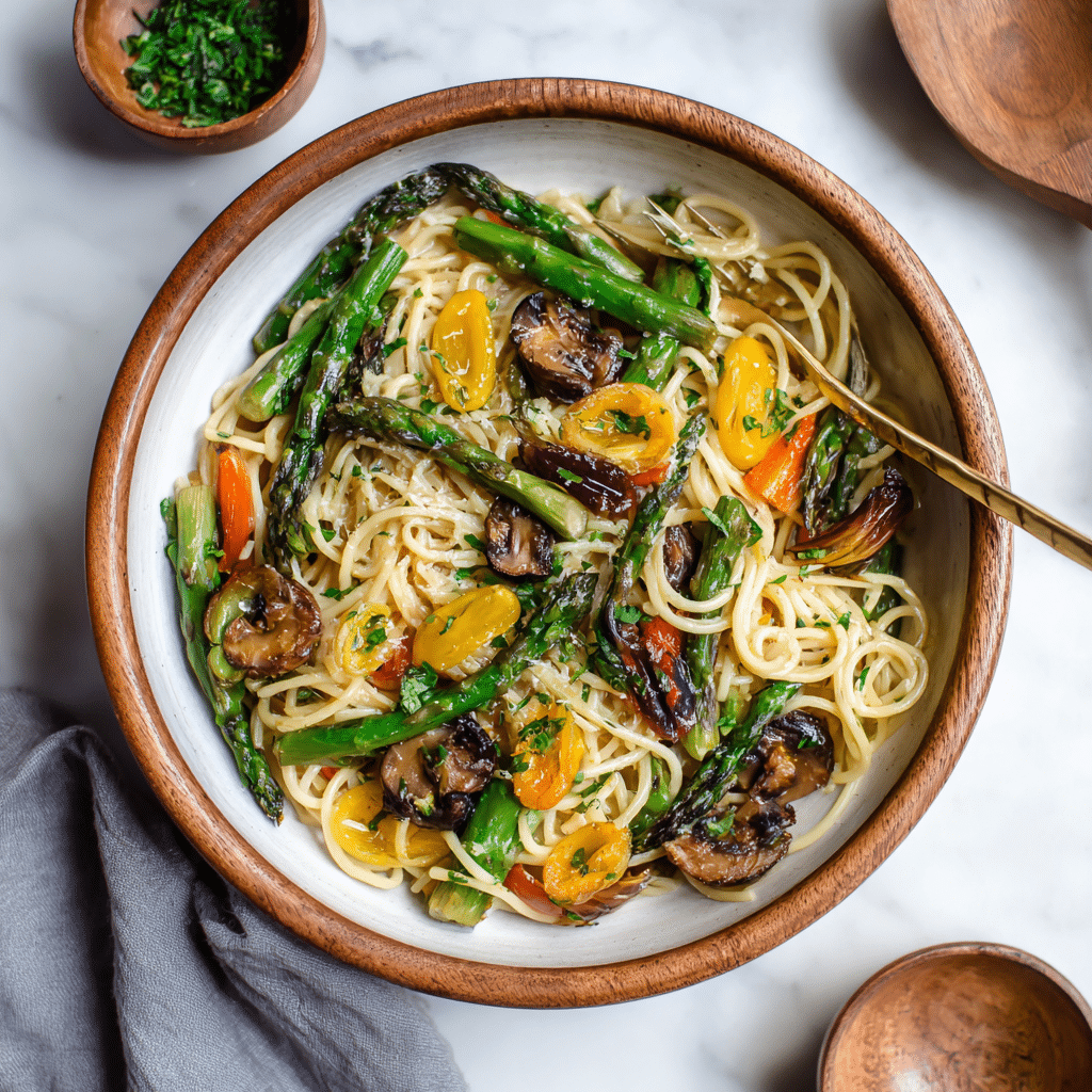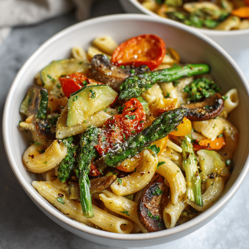 Vegan Pasta Primavera with Roasted Spring Vegetables β A Bowl of Springtime Comfort
