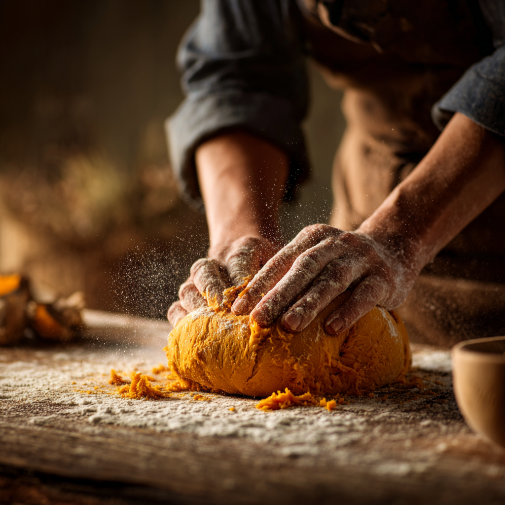 In a large bowl, mix pumpkin purée, melted coconut oil, sugar, vanilla, and salt. Add the yeast mixture, then gradually stir in flour. Knead for 5–7 minutes until smooth.Let It Rise: