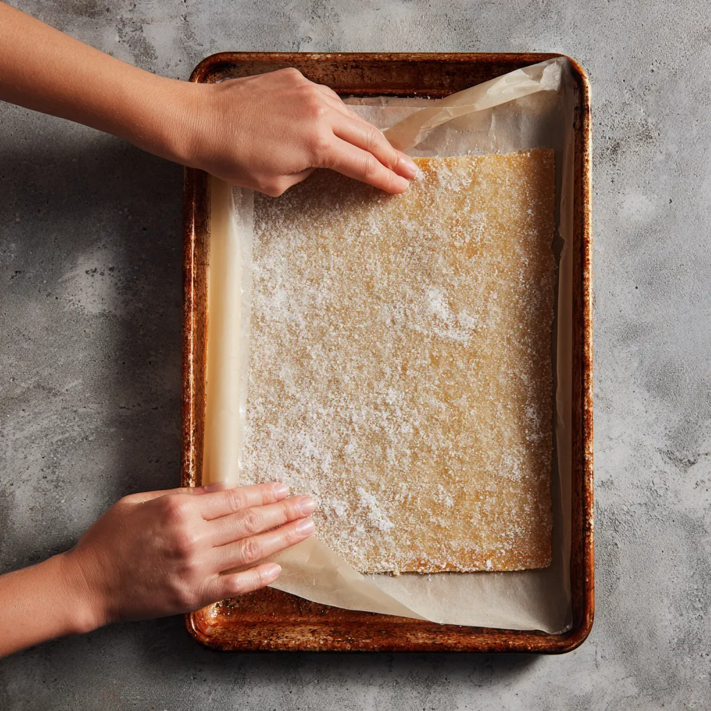 Line a baking sheet with parchment paper to prevent sticking. Make sure it’s completely flat so the bark spreads evenly.