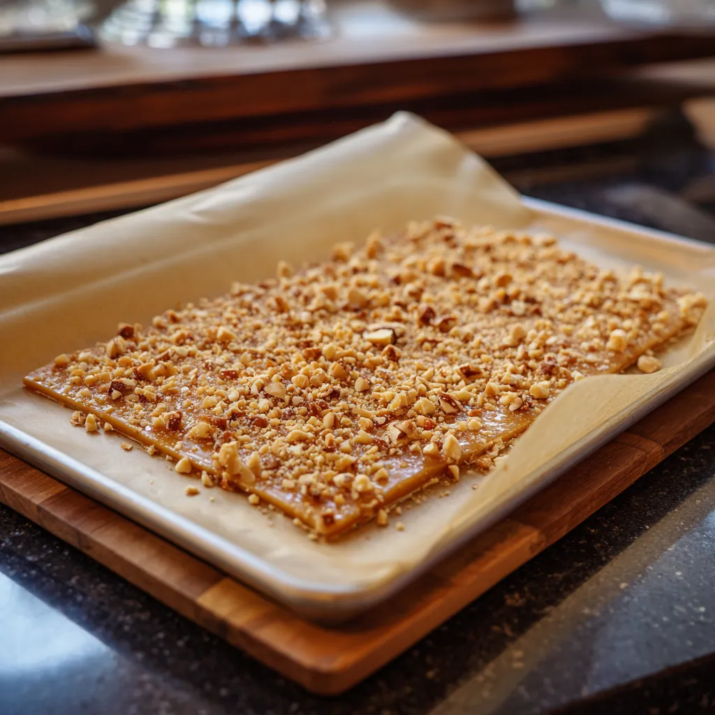Let the tray cool completely, then break the toffee into large, rustic chunks.