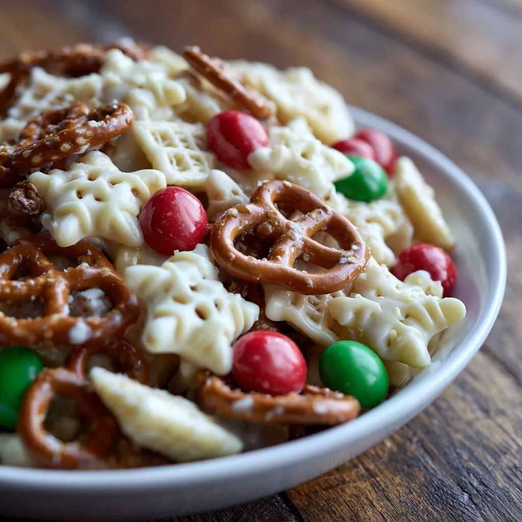 Hi, I’m INAYA, and every year when Christmas gets close, my kitchen turns into a whirlwind of sweet smells, holiday music, and little moments that make me smile. One of the very first treats I ever made on my own was White Chocolate Pretzel Christmas Mix, and honestly, it still brings me the same joy today. I remember standing in my grandmother’s warm kitchen in Crete, watching her melt chocolate the old-fashioned way and laughing as I tried to mix everything without making a giant mess. Spoiler: I always made a mess.